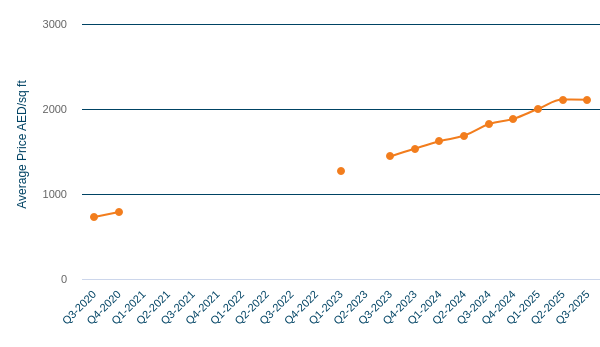 Property prices in The Springs have been steadily increasing due to high demand and limited supply. In Q4 2024, the price was around AED 1,883 per square foot, and by Q4 2025, it had risen to AED 2,107 per square foot, an annual increase of 13.6%. This surge in prices points to the growing demand for properties in the area. Smaller and mid-sized villas are popular, as families seek green spaces and easy access to business areas, further driving property values upward.